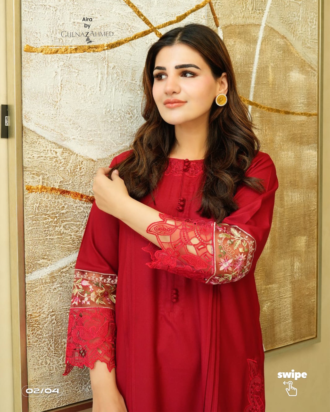 deep red marina embroidered two piece adorned with detailing of delicate embroidery, cutwork, palates and